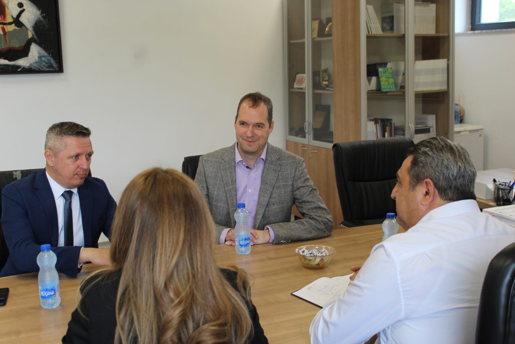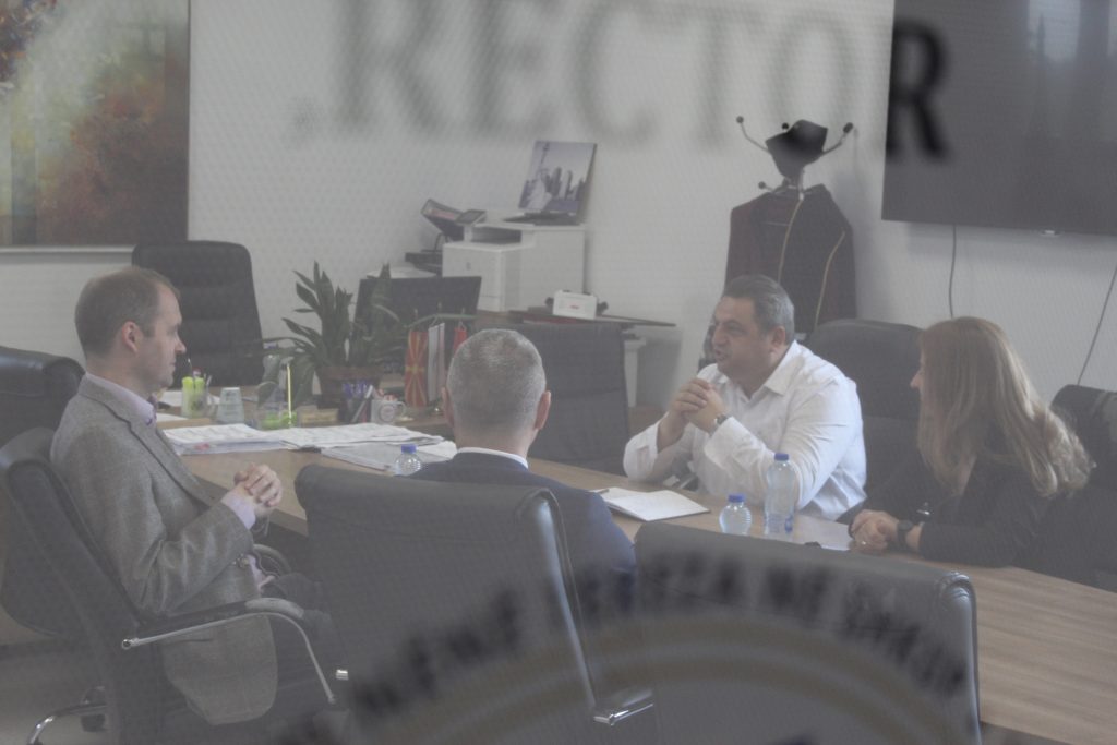 During the meeting, MTU Rector, Lecturer Bekim Fetaji, Ph.D., accompanied by the Vice-Rector for International Relations, Assoc. Prof. Diturije Ismaili, Ph.D., and Lecturer Daniel Pavlovski, Ph.D., informed the Dutch guest in detail about the academic developments of MTU, its scientific projects, and current and future collaborations with international educational and research institutions.