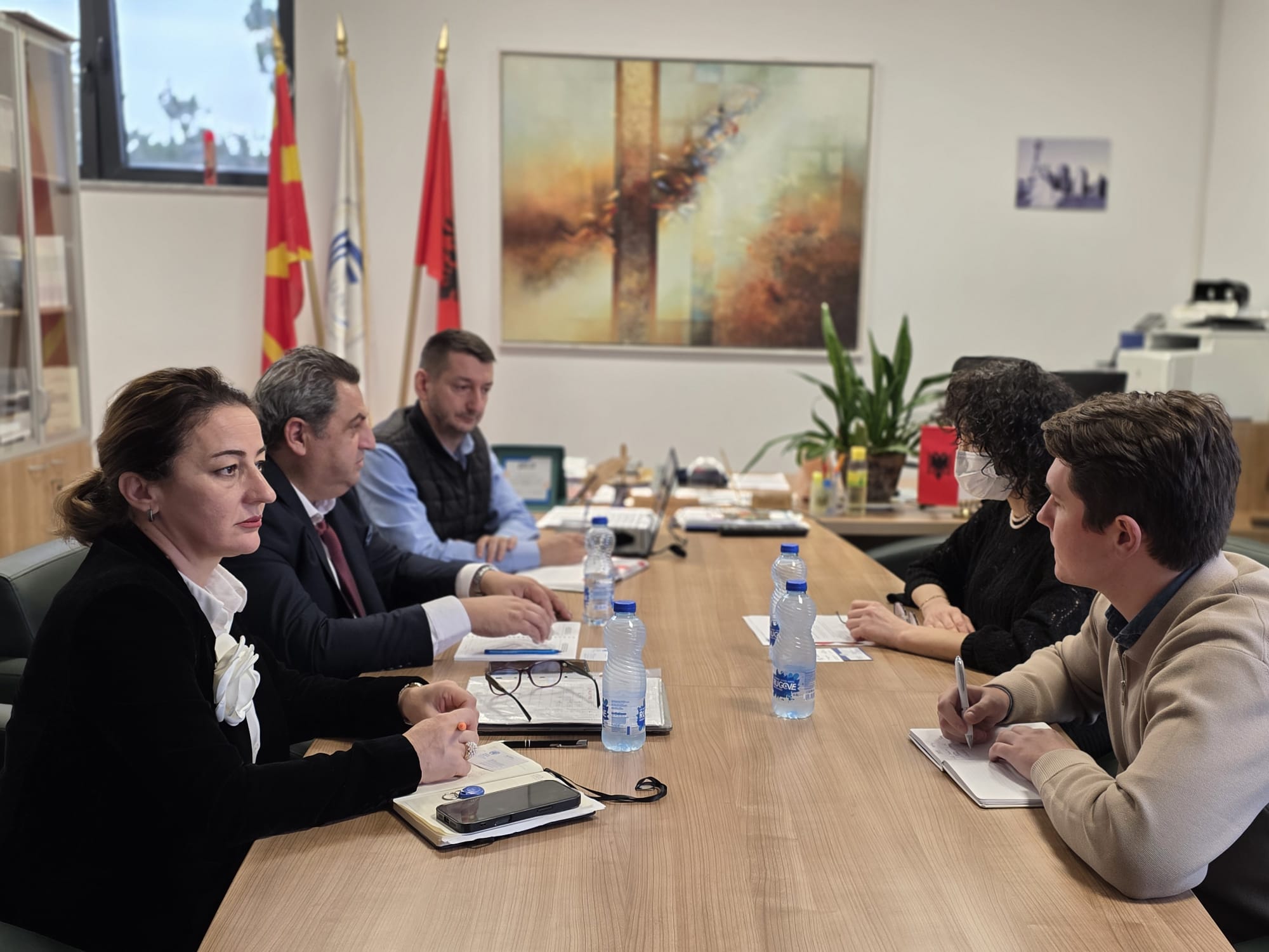 During the meeting, Rector Full Prof. Bekim Fetaji, Ph.D., accompanied by the Vice-Rector for International Cooperation, Assoc. Prof. Diturije Ismaili, Ph.D., and MTU Secretary General, Pishtar Luftiu, M.A., informed Ms. Rita Columbia about the mission, academic programs, and development projects of MTU, as well as the institution’s efforts to integrate the sustainable development goals into teaching, research, and international cooperation.