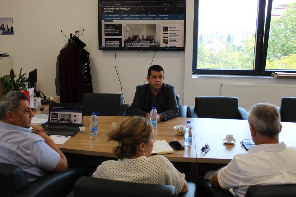 Скопје, 20.08.2025 година – Ректорот на Универзитетот „Мајка Тереза“ во Скопјe, проф. д-р Беким Фетаји, денес одржа работен состанок со д-р Бесник Емини в.д. директор на Институтот за духовно и културно наследство на Албанците (ИДКНА) во Северна Македонија,