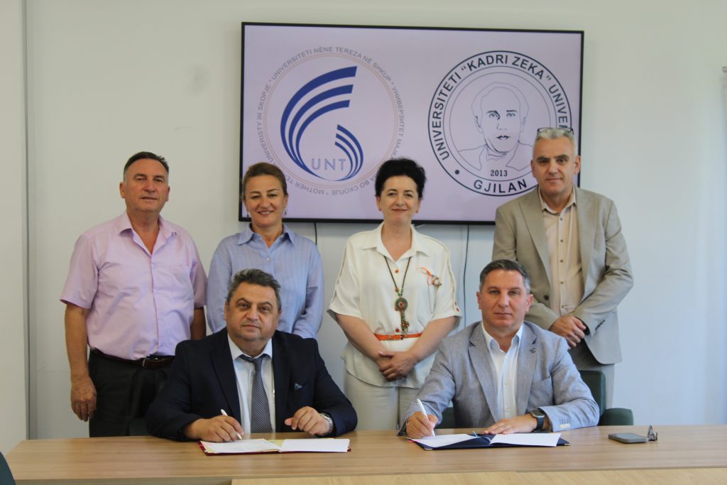 Shkup, 01.07.2025 – Sot, në ambientet e Universitetit “Nënë Tereza” në Shkup, u zhvillua një takim zyrtar i ndjekur nga ceremonia e nënshkrimit të marrëveshjes së bashkëpunimit ndërmjet UNT-së, i kryesuar nga rektori Prof. Dr. Bekim Fetaji, dhe Universitetit Publik “Kadri Zeka” nga Gjilani, përfaqësuar nga rektori Prof. Dr. Artan Dërmaku, me qëllim forcimin e lidhjeve akademike dhe shkencore ndërmjet dy institucioneve të arsimit të lartë.