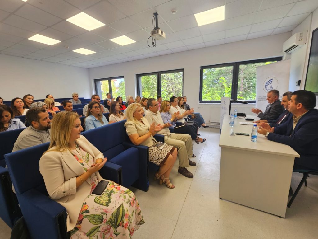 Në kumtesën e tij, rektori Prof. Dr. Bekim Fetaji potencoi se ‘Nëna Terezë ishte shembulli i përkryer i asaj se si vlerat shpirtërore mund të shndërrohen në vepra konkrete që ndryshojnë realitete. Ajo na mëson se humanizmi nuk është një ideal i paarritshëm, por një veprim i përditshëm. Si universitet, ne kemi misionin që këtë frymë ta përfshijmë në programet tona arsimore dhe shkencore, në projektet kërkimore dhe në formimin e studentëve tanë, në mënyrë që çdo dije e fituar të shërbejë si mjet për përmirësimin e jetës së njerëzve dhe të shoqërisë.’ – tha rektori Fetaji.