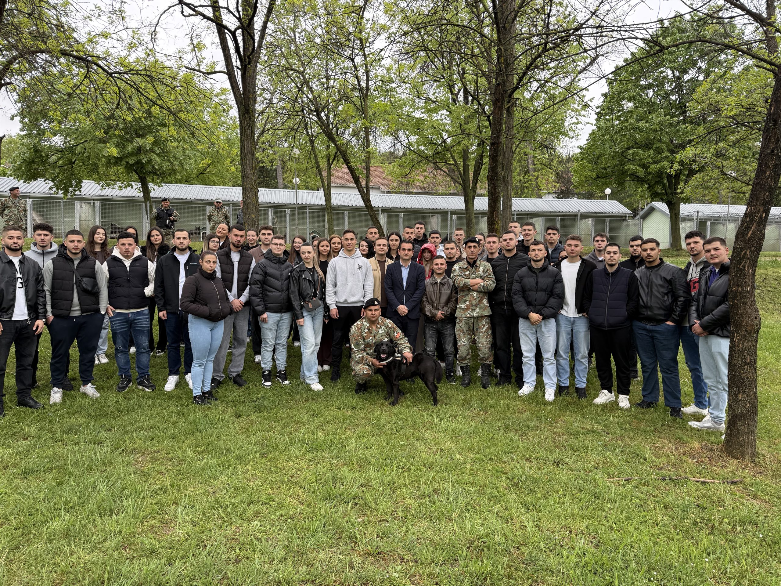 Shkup, Prill 2026 – Studentët e programeve studimore Kriminalistikë, si dhe atyre të Doganës, Shpedicionit dhe Sigurimeve në Universitetin “Nënë Tereza” në Shkup, realizuan një vizitë studimore në Njësinë për Trajnim të Qenve pranë Ministrisë së Mbrojtjes të Republikës së Maqedonisë së Veriut. Vizita u realizua nën udhëheqjen e Prof. Dr. Naser Etemit.