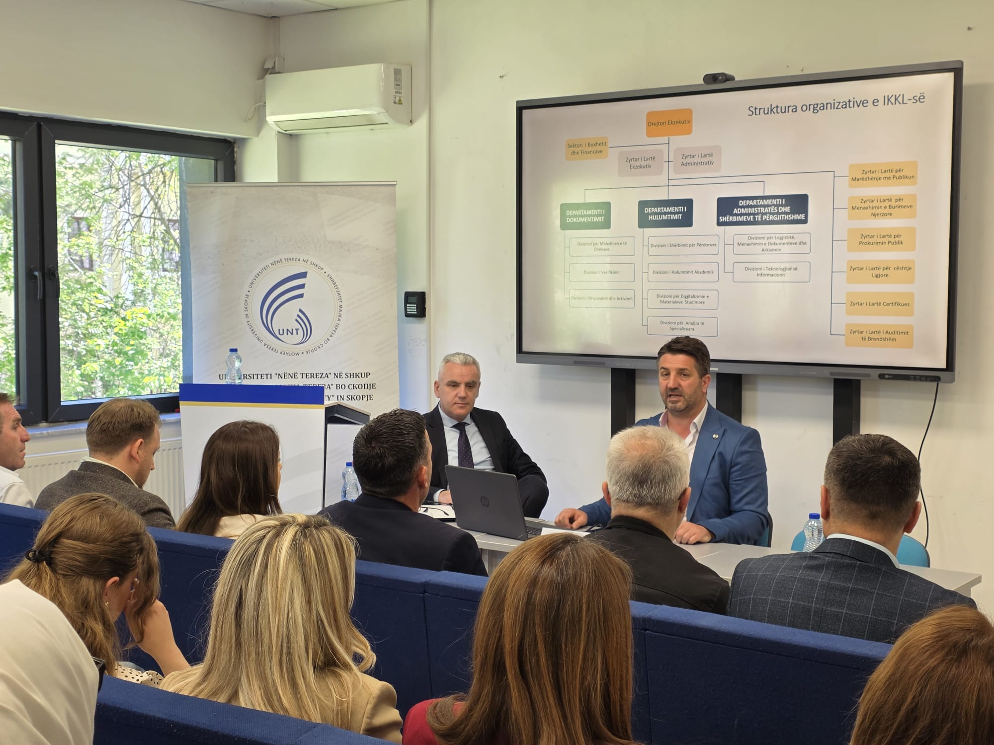 Skopje, April 27, 2026 – Today, Mother Teresa University in Skopje and the Institute for War Crimes Committed During the Kosovo War officially formalized their cooperation through an agreement, accompanied by a pubic lecture for students and academic staff.