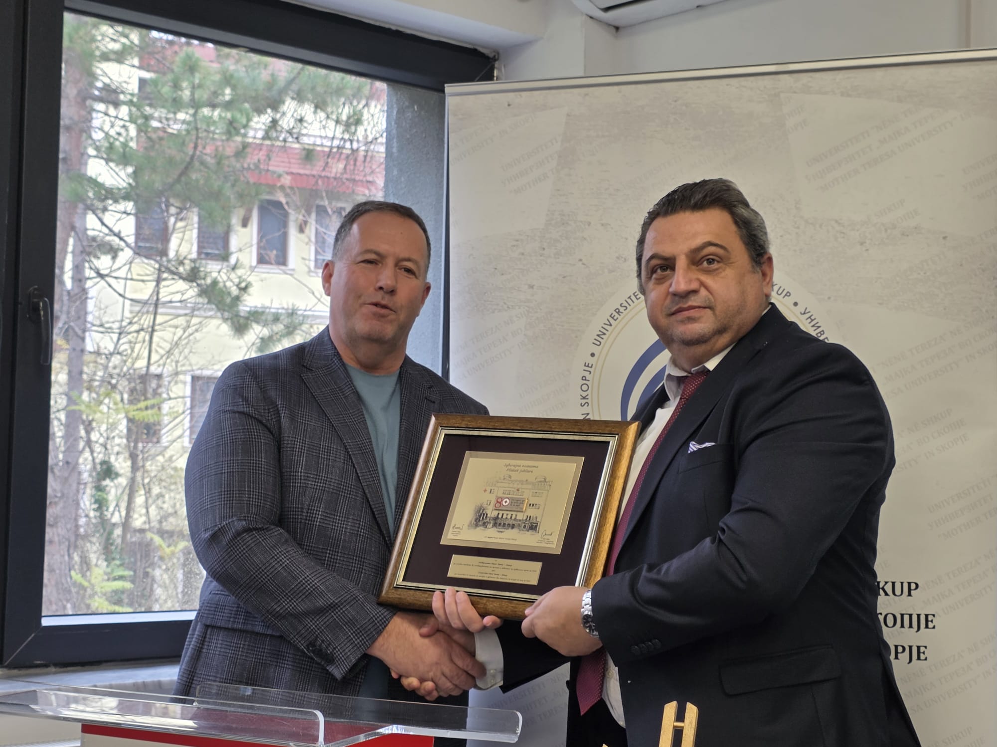 Скопје, 02.12.2025 година – Универзитетот „Мајка Тереза“ во Скопје, во ко-организација со Црвениот крст, ја одржа церемонијата на доделување на јубилејната плакета по повод 80-годишнината од постоењето на Црвениот крст, како значајна благодарност за континуираниот придонес на Универзитетот во промоцијата на хуманизмот, солидарноста и граѓанското образование. По церемонијата следеше панел-дискусија на тема: „Искуства и добри практики како основа за развој на нови хуманитарни стратегии“.