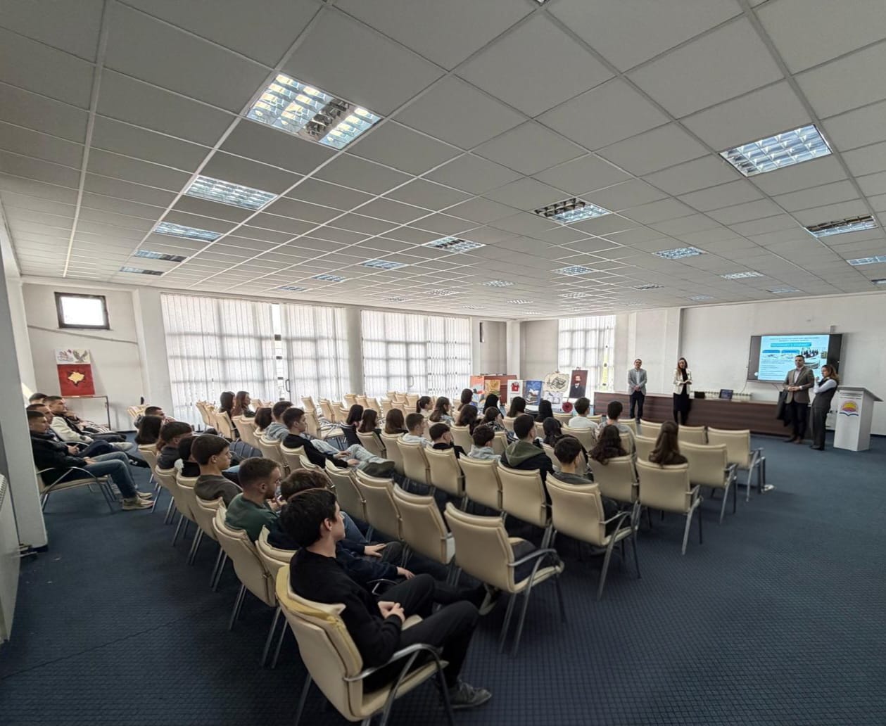 Скопје, април 2026 година – Промотивниот караван на Универзитетот „Мајка Тереза“ во Скопје ја реализираше следната посета во Средното општинско училиште „Зеф Луш Марку“ во Скопје, отворајќи конструктивен дијалог со матурантите за нивниот иден академски пат. Оваа информативна средба послужи како платформа за презентирање на богатата образовна понуда која ги опфаќа осумте академски единици на нашиот универзитет.