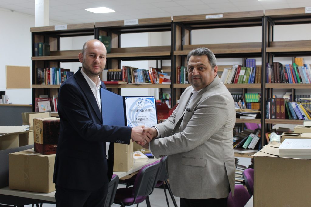 Shkup, 19.05.2025 – Universiteti “Nënë Tereza” në Shkup u pasurua me një donacion prej 700 librash nga Shtëpia Botuese “Logos A”. Me këtë rast, rektori Prof. dr. Bekim Fetaji priti në takim pune z. Muhamed Jashari, përfaqësues i “Logos A”, për të shprehur mirënjohjen institucionale për këtë kontribut të vlefshëm në përkrahje të zhvillimit akademik dhe zgjerimit të fondit bibliotekar.