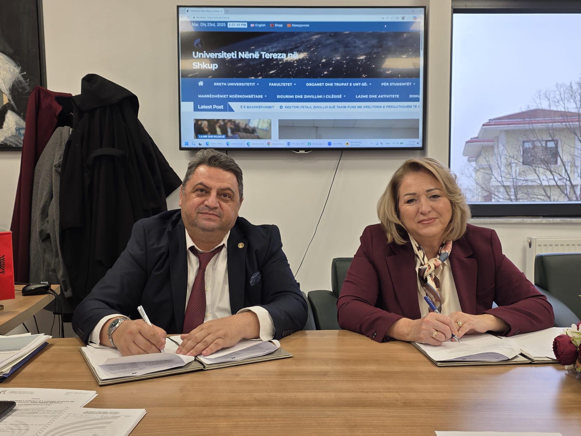 Shkup, 23.12.2025 – Universiteti “Nënë Tereza” në Shkup dhe Komisioni i Letrave me Vlerë në Republikën e Maqedonisë së Veriut kanë zyrtarizuar sot një partneritet strategjik përmes nënshkrimit të një Memorandumi Bashkëpunimi. Dokumenti u nënshkrua nga rektori i UNT-së, Prof. Dr. Bekim Fetaji, dhe kryetarja e Komisionit të Letrave me Vlerë, Mr. Bujare Abazi.