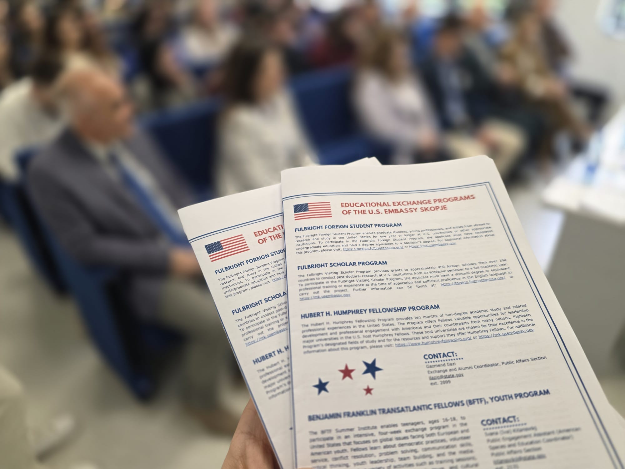 Gjatë prezantimit, të pranishmit patën mundësinë të dëgjojnë koordinatorin e Programit Alumni pranë Ambasadës së SHBA-së në Shkup, z. Gazmend Ilazi. Ai elaboroi në detaje procesin e aplikimit, kriteret dhe përfitimet nga programet e ndryshme të bursave, duke i inkurajuar studentët që të bëhen pjesë e rrjetit prestigjioz të alumni-ve amerikanë.